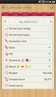 Except basic period cycle tracker function, Period Calendar girls record anything about herself cycles, symptoms, moods,tercourse, weight, temperature,e pills which want birch control. designedr personal period tracker diary sweet secretary.