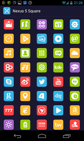 - Settings-> Appearance Settings-> Icon pack-> "Nexus 5 Squ"